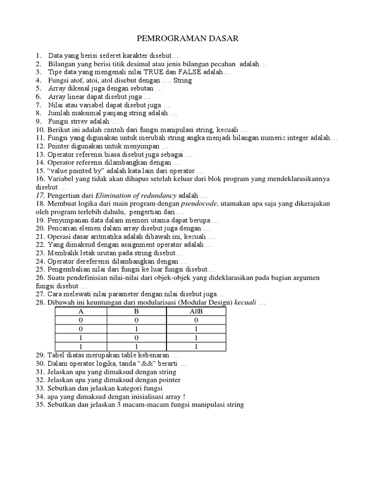 Kisi Soal Xi Mm from imgv2-1-f.scribdassets.com Oct 08, 2019 · data yang berisi sederet karakter disebut. Jelaskan apa yang dimaksud dengan pointer. Data yang berisi sederet karakter disebut…. Sebuah prosedur langkah demi langkah yang pasti untuk menyelesaikan sebuah masalah di sebut Tipe data terstruktur yang terdiri dari sejumlah komponen ,komponen yang mempunyai tipe sama, disebut tipe data. Salah satu fitur andalan dalam bahasa c yang membedakannya dengan bahasa pemrograman lain seperti java atau visual basic. Larik dapat dibuat beberapa dimensi, misalnya untuk menggambarkan matrix kita perlu menggunakan larik 2 dimensi. Tipe data yang mengenali nilai